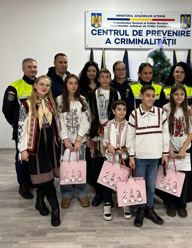 Cei mici au fost întâmpinați cu daruri, zâmbete și voie bună în cadrul unei vizite speciale. Colindătorii de la Colegiul de Arte Regina Maria au pășit astăzi în sediul Inspectoratului de Poliție Județean Constanța, aducând cu ei atmosfera de sărbătoare.